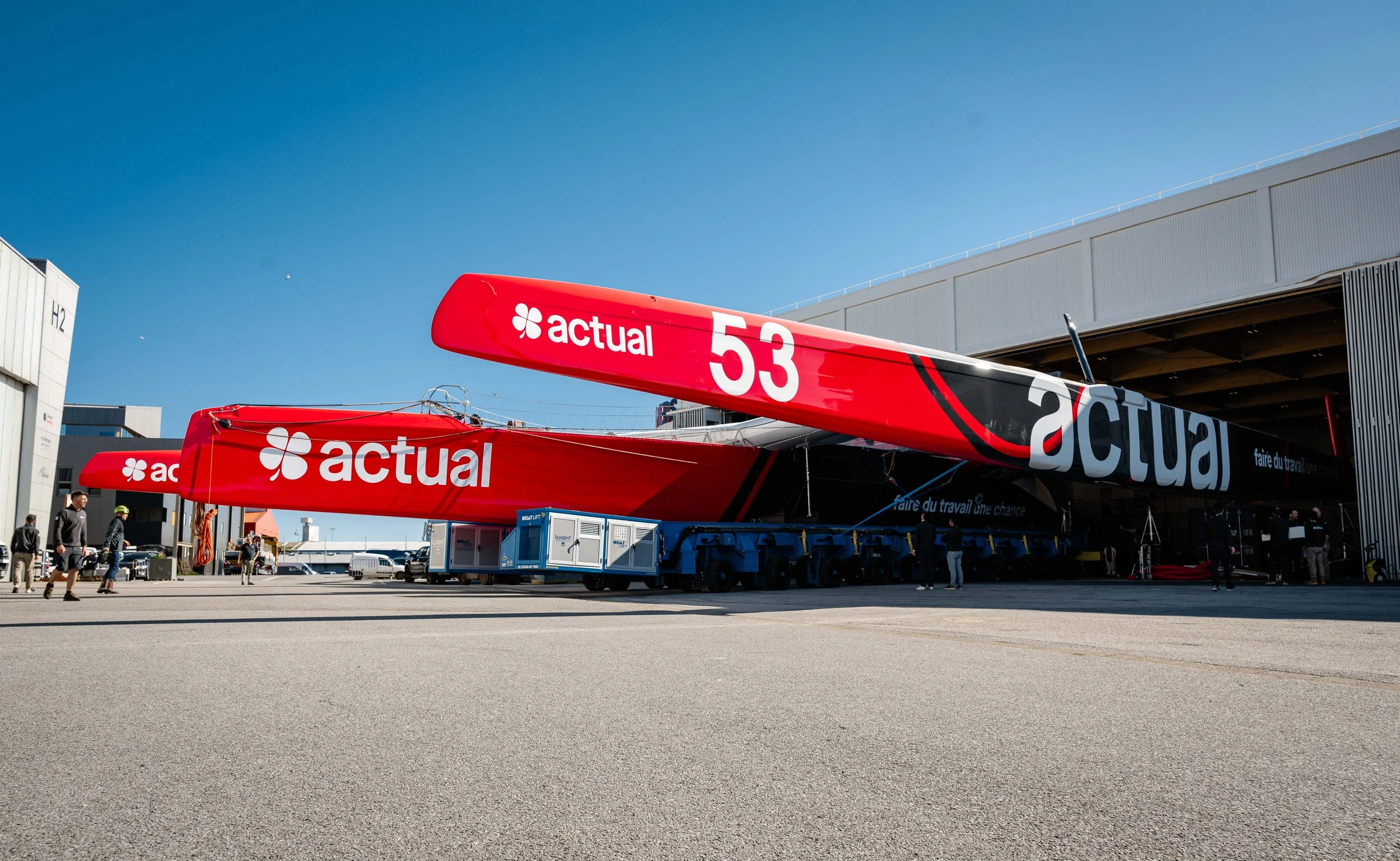 En images, découvrez la mise à l’eau d’Actual Ultim 4 au port de Lorient la Base.